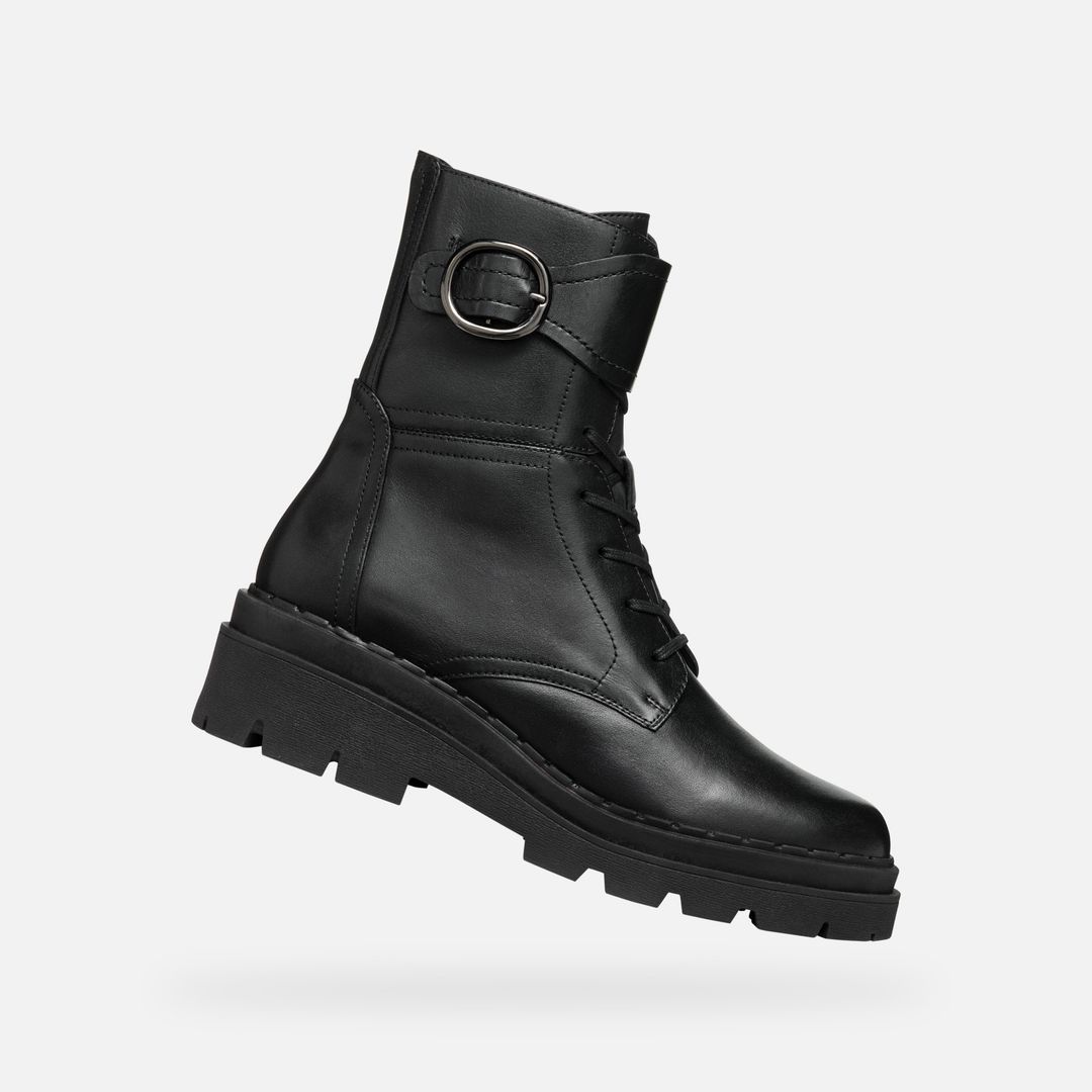 Černá dámska kotníková obuv Geox Felleny s kovovou prackou pre stabilné upevnenie okolo kotníka.