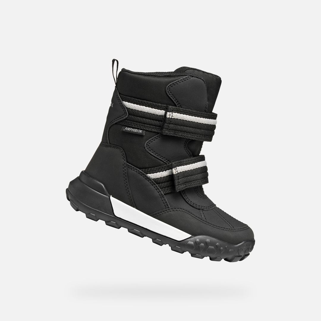 Černá chlapčenská kotníková obuv Geox Trekkyup ABX s praktickými suchými zipsami a nepremokavou technológiou pre aktívne dni.