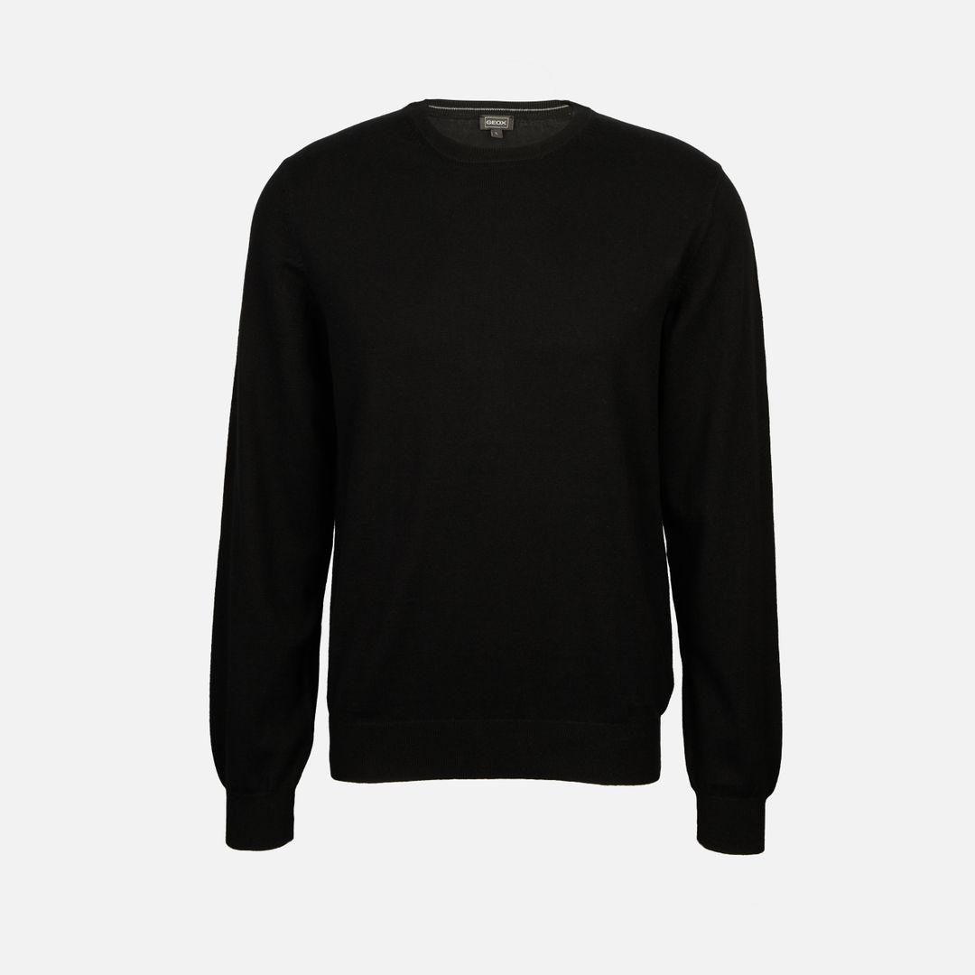 Čierny pánský sveter Geox s okrúhlym výstrihom a dlhými rukávmi na chladnejšie dni v práci alebo vo voľnom čase.