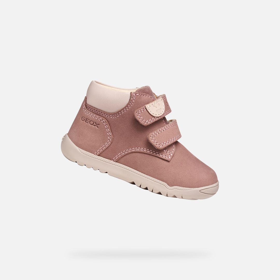 Ružové dievčenské topánky pre prvé krôčky Geox Macchia s praktickými suchými zipsami pre najmenšie.