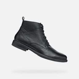Tmavo hnedá pánska členková obuv Geox Terence s klasickým šnurovaním pre formálne príležitosti a kancelárske prostredie.